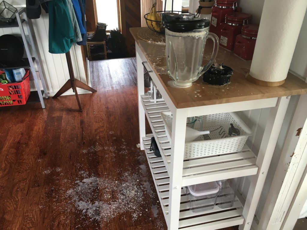 I was not accustomed to the machinations of my new blender and, apparently, I failed to properly attach the bottom. When I lifted the glass off of the base, I noticed cloudy drops of liquid pooling on the countertop. Something was clearly wrong. I couldn’t identify the problem in the moment, but I knew there was no time to waste.