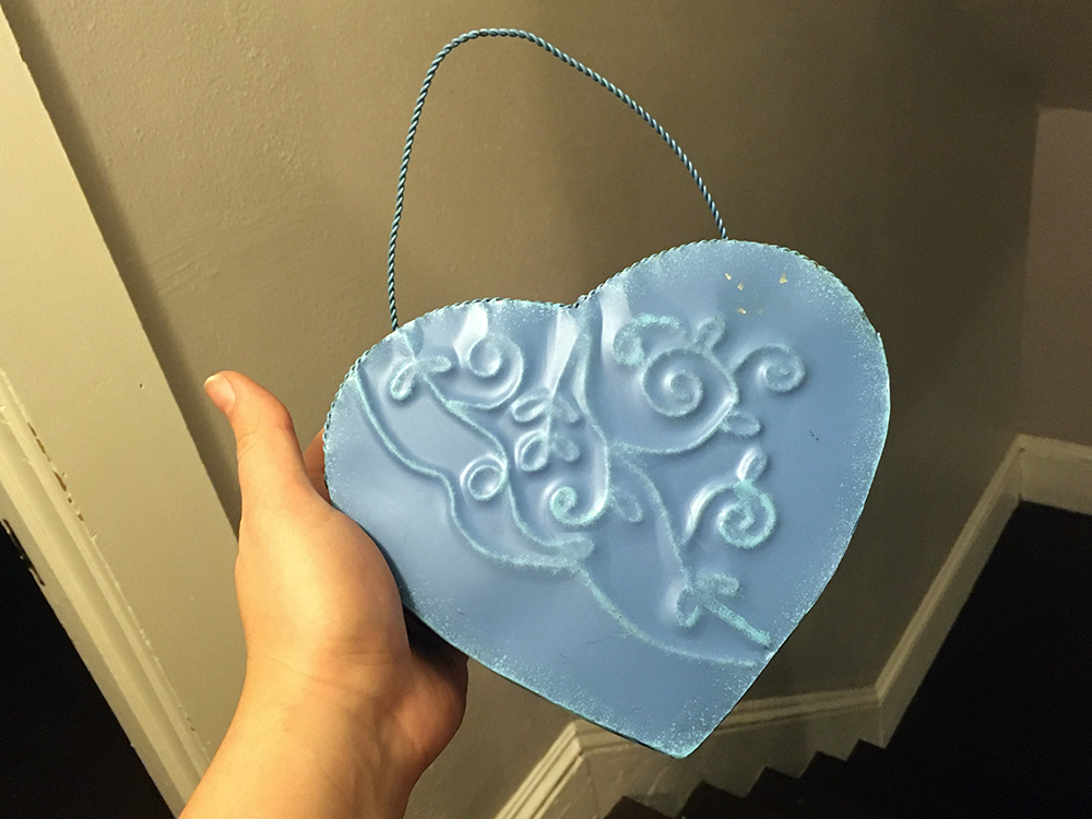 I took a step back and decided to choose a project before I picked my items. I thought back to an article I once wrote on container gardening and decided that, as long as I wasn’t growing edible plants, I could make a pretty planter out of almost anything. With my new goal in mind, I chose a $5 basket perfectly sized for my windowsill, a strange $2 hanging tin heart and a bag of stones I could use for drainage for succulents.